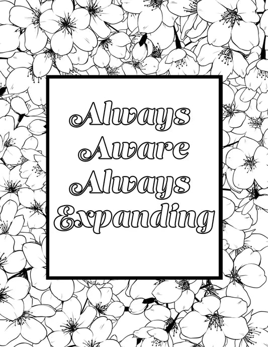 "Always Aware Always Expanding" Personal Development PLR Coloring Page - Inspirational Content with Private Label Rights