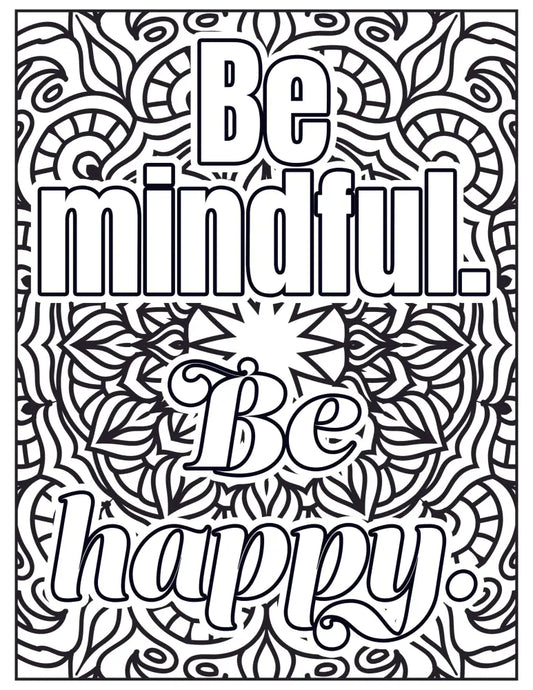 "Be Mindful. Be Happy" PLR Coloring Page - Inspirational Content with Private Label Rights