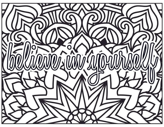 "Believe in Yourself" Self-Care PLR Coloring Page - Inspirational Content with Private Label Rights