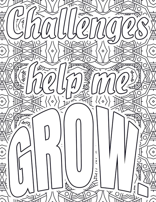 "Challenges Help Me Grow" PLR Coloring Page - Inspirational Content with Private Label Rights