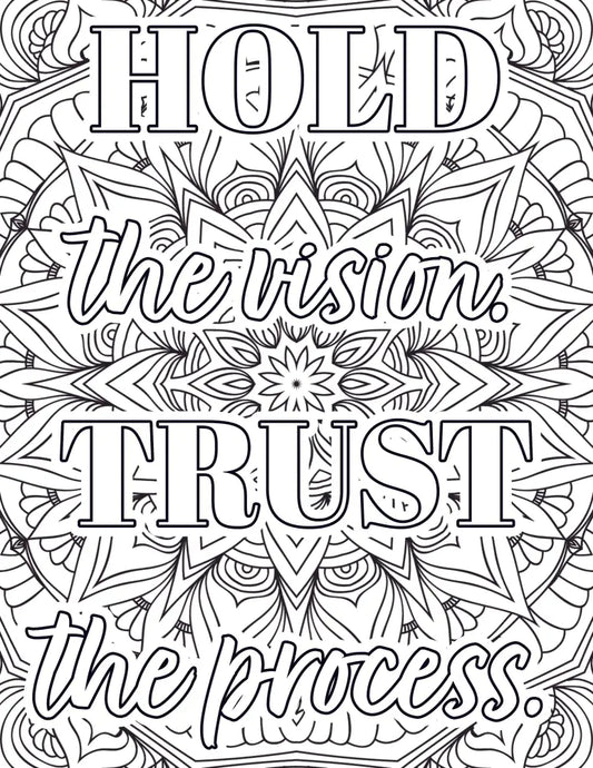 "Hold the Vision Trust the Process" Personal Development PLR Coloring Page - Inspirational Content with Private Label Rights