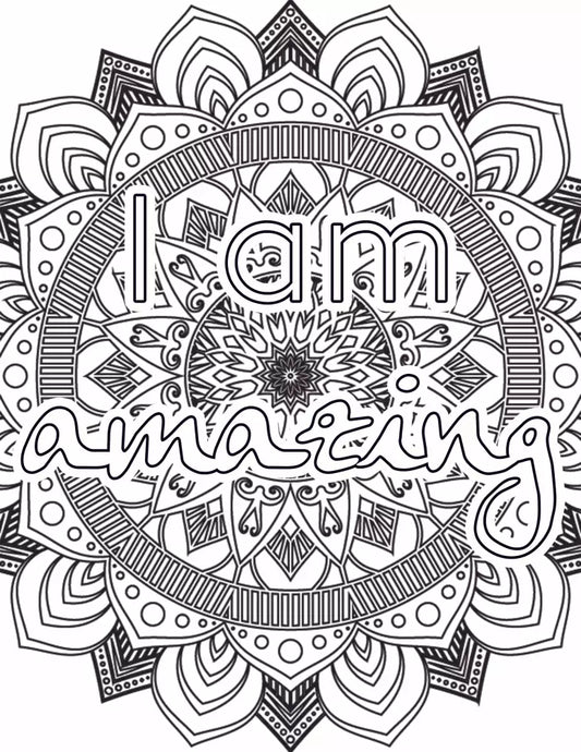 "I am Amazing" Personal Development PLR Mandala Coloring Page - Inspirational Content with Private Label Rights