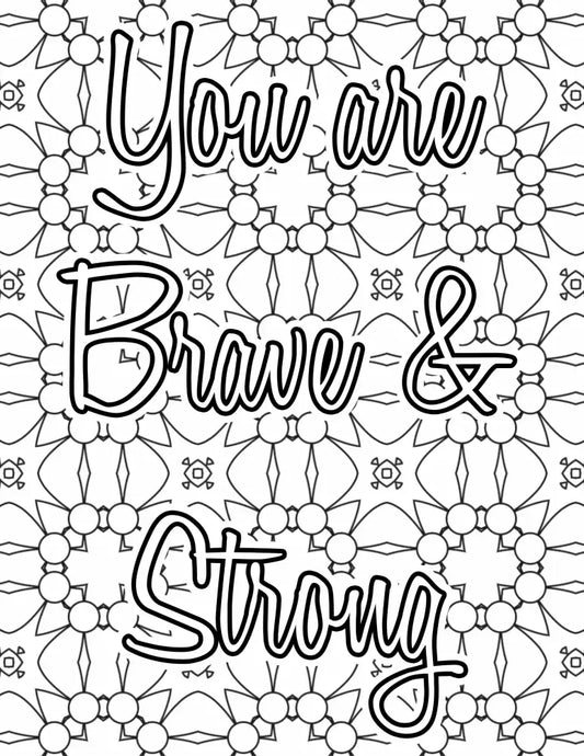 "You Are Brave and Strong" Self-Care PLR Coloring Page - Inspirational Content with Private Label Rights