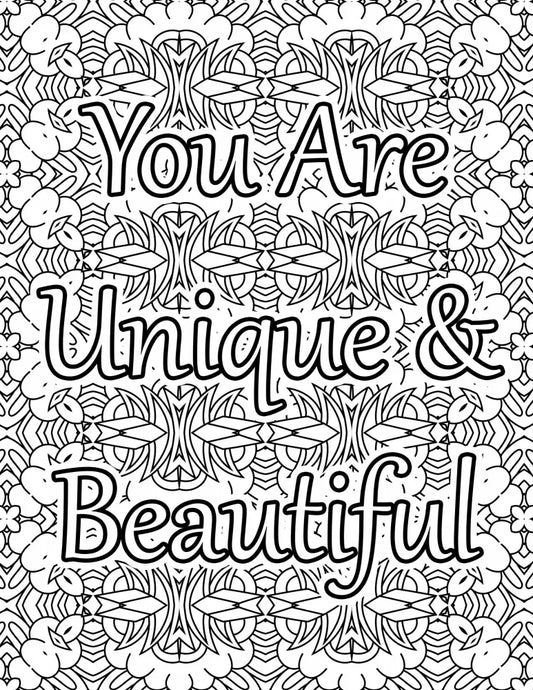 "You Are Unique and Beautiful" Self-Love PLR Coloring Page - Inspirational Content with Private Label Rights