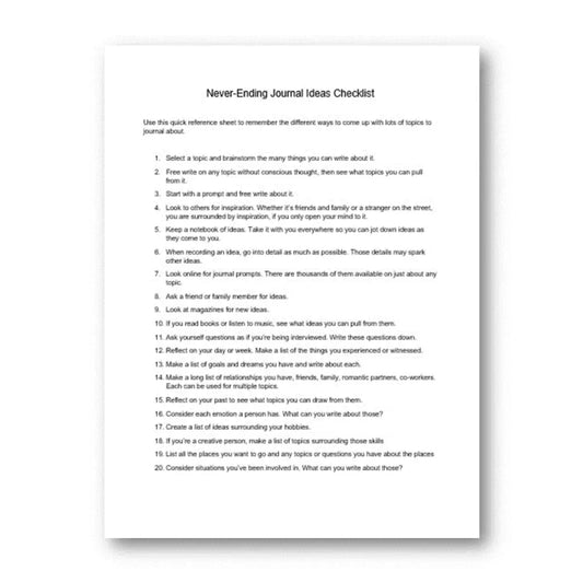 Journaling Ideas PLR Checklist & Worksheet
