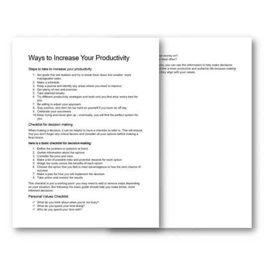 Ways to Increase Your Productivity Checklist & Worksheet