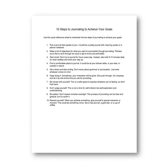 10 Steps to Journaling to Achieve Your Goals PLR Checklist & Worksheet