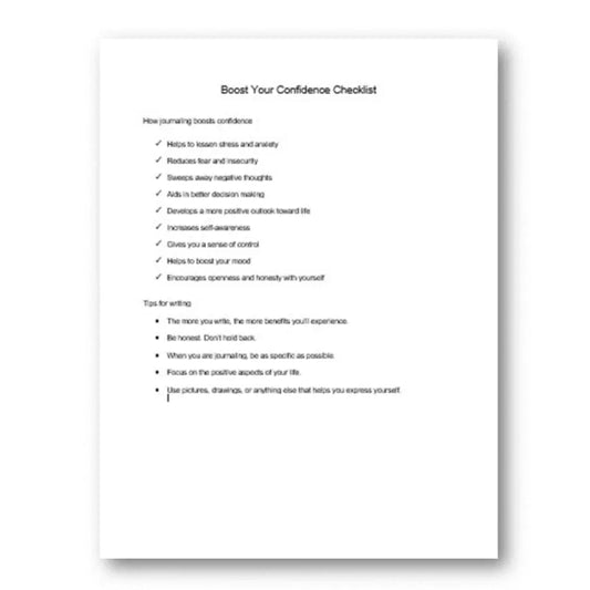 Boost Your Confidence with Journaling PLR Checklist & Worksheet