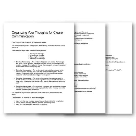 Organizing Your Thoughts for Clearer Communication PLR Checklist & Worksheet