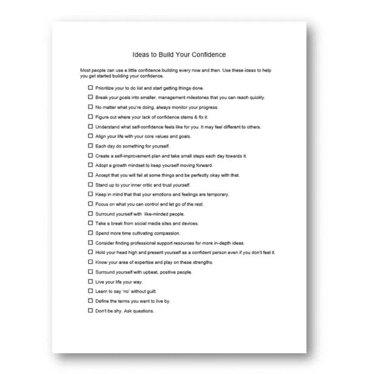 Building Confidence & Self-Esteem PLR Checklist & Worksheet