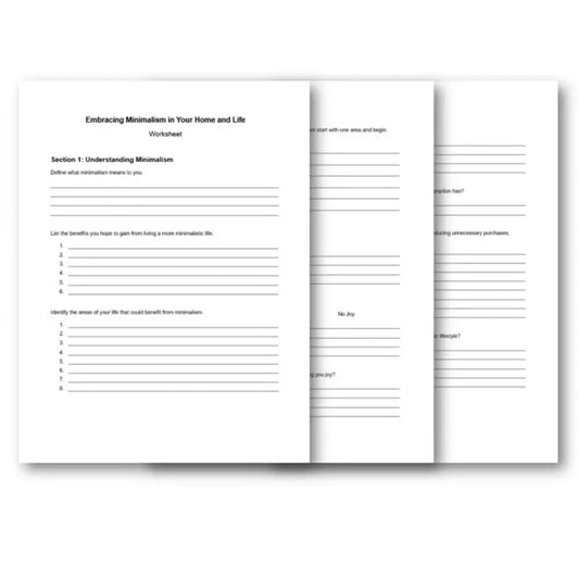 Embracing & Implementing Minimalism in Your Life Checklist and Worksheet