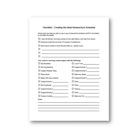 Creating the Ideal Homeschool Schedule PLR Checklist & Worksheet