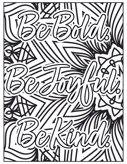 "Be Bold. Be Joyful. Be Kind." Self-Improvement PLR Coloring Page - Inspirational Content with Private Label Rights