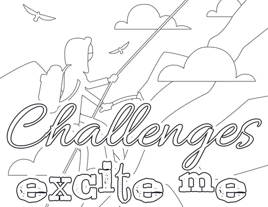 "Challenges Excite Me" Self-Improvement PLR Coloring Page - Inspirational Content with Private Label Rights