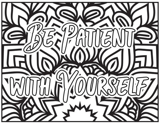 "Be Patient With Yourself" Self-Care PLR Coloring Page - Inspirational Content with Private Label Rights