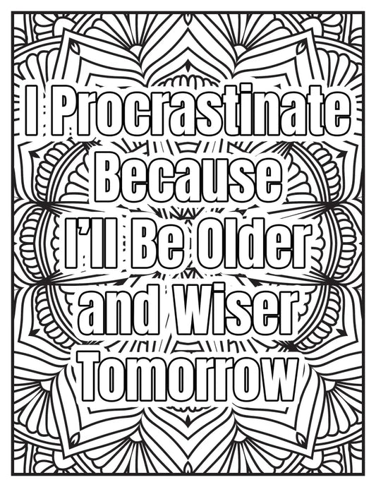 ON SALE - "I Procrastinate Because I'll Be Older and Wiser Tomorrow" PLR Coloring Page - Inspirational Content with Private Label Rights