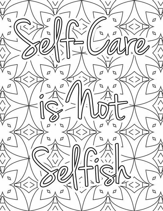 "Self-Care is not Selfish" Self-Care PLR Coloring Page - Inspirational Content with Private Label Rights