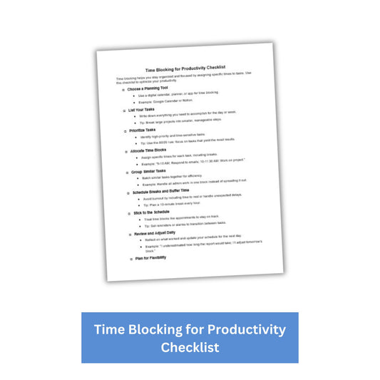 Time Blocking for Productivity PLR Checklist & Worksheet
