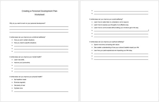 Self-Improvement & Self-Assessment Personal Development Checklist and Worksheet