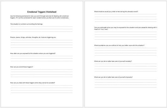Steps to Coping with Emotional Triggers Checklist and Worksheet