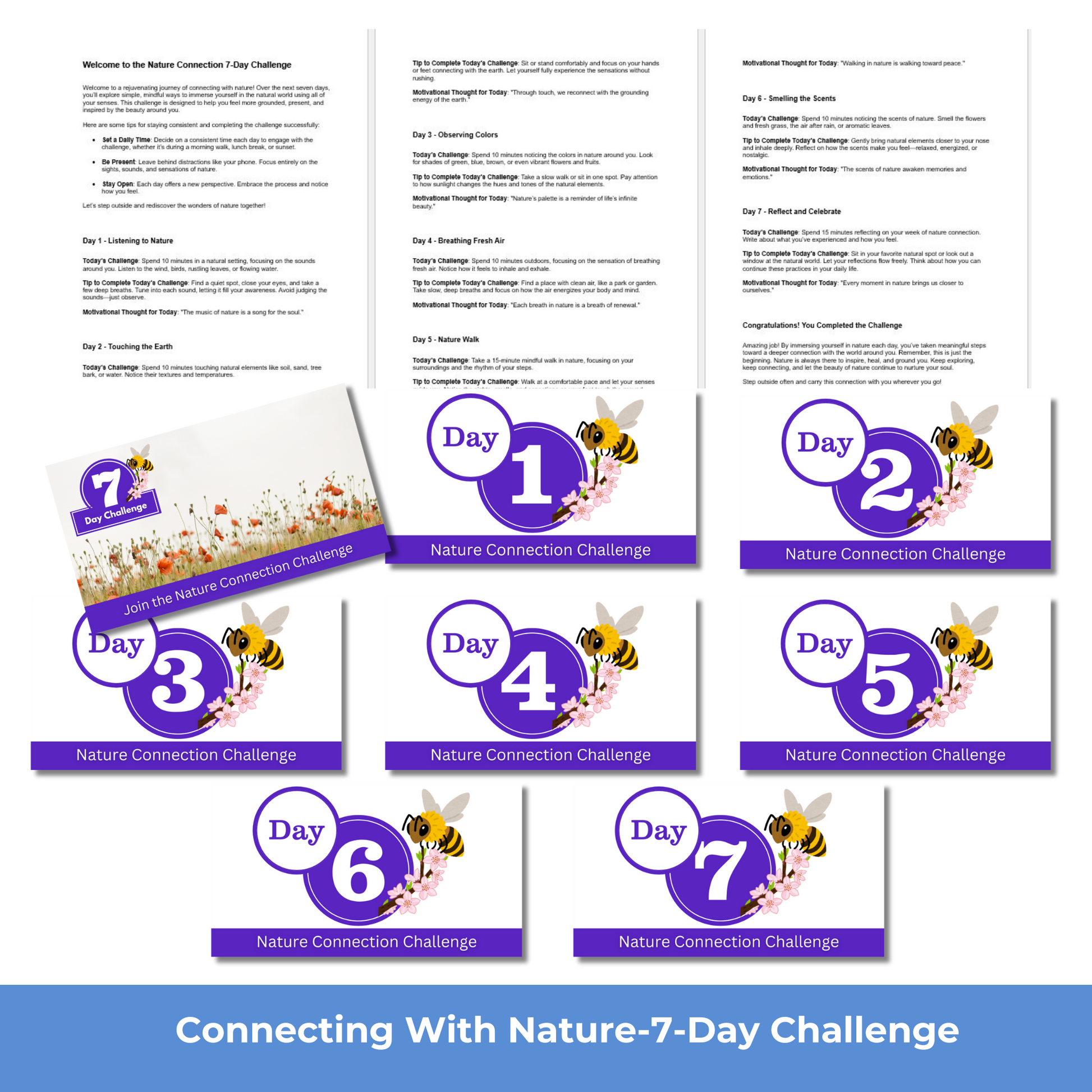 - Connecting with Nature Challenge 3 pages (806 words) .docx format - with daily work, tips and encouragement to keep going.