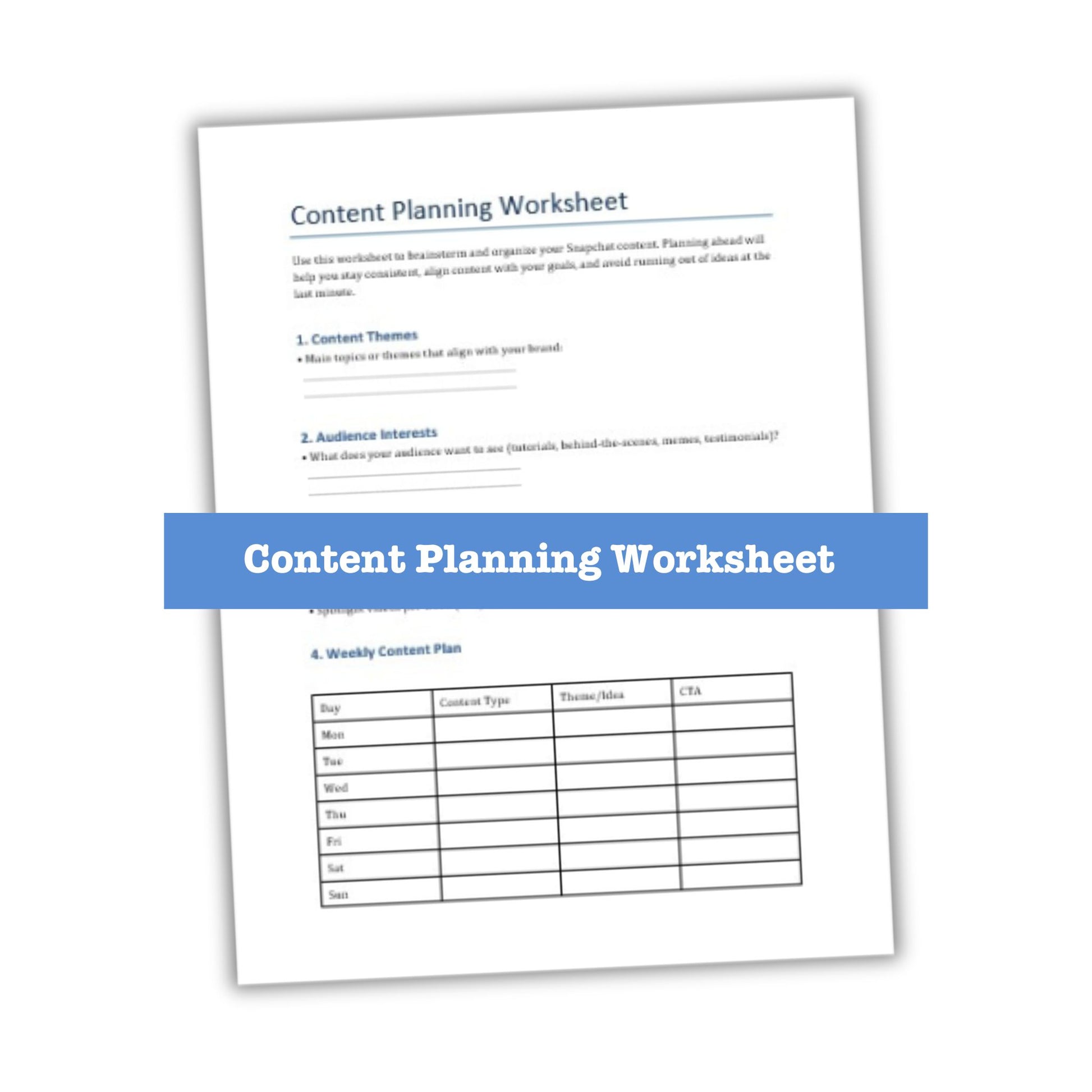 Use this worksheet to brainstorm and organize your Snapchat content. Planning ahead will help you stay consistent, align content with your goals, and avoid running out of ideas at the last minute.