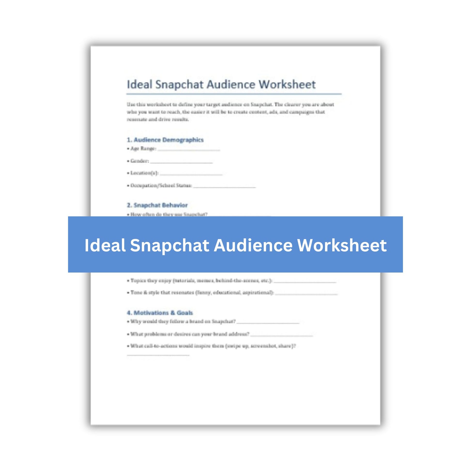 Use this worksheet to define your target audience on Snapchat. The clearer you are about who you want to reach, the easier it will be to create content, ads, and campaigns that resonate and drive results.