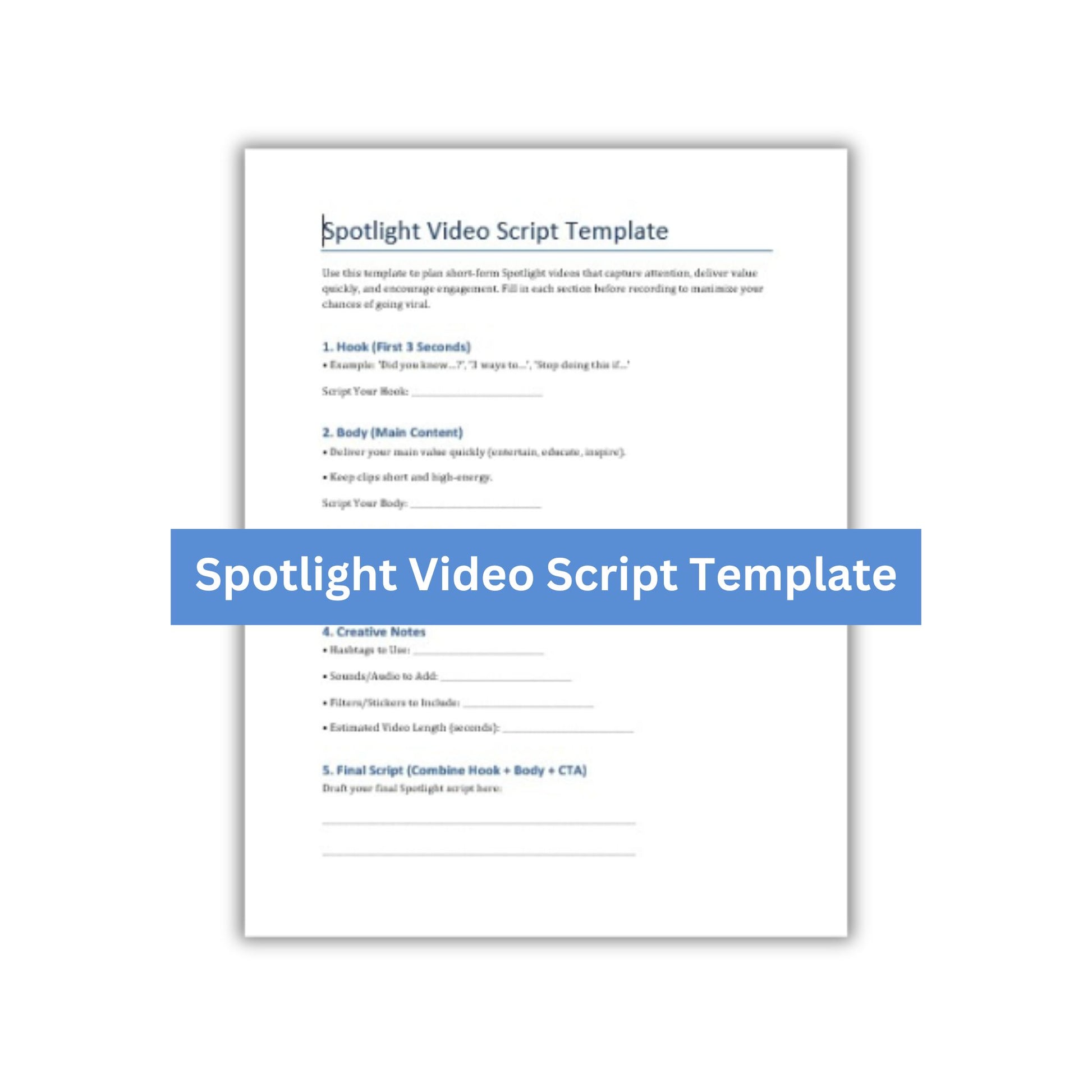 Use this template to plan short-form Spotlight videos that capture attention, deliver value quickly, and encourage engagement. Fill in each section before recording to maximize your chances of going viral.